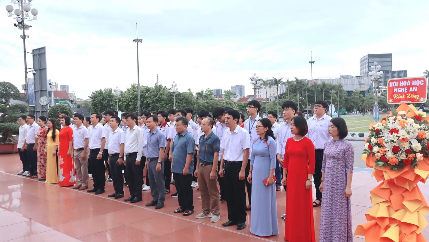 Đoàn đại biểu và các thí sinh dự thi Chung kết Olympic Hoá học 19- 5 năm 2023 làm lễ dâng hoa trước tượng đài Bác Hồ tại Quảng trường Hồ Chí Minh – Nghệ An