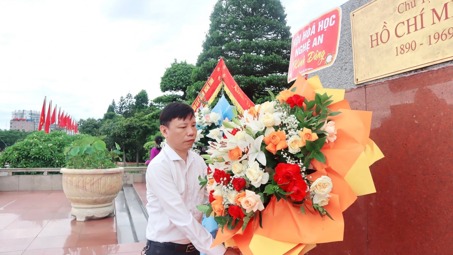 GS.TS. Cao Cự Giác - Chủ tịch Hội Hoá học Nghệ An dâng hoa tại Quảng trường Hồ Chí Minh