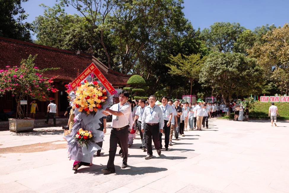 TS. Chử Văn Nguyên Tổng Thư ký Hội Hoá học Việt Nam và GS.TS. Cao Cự Giác Chủ tịch Hội Hoá học Nghệ An tham dự Lễ dâng hương báo công với Bác về kỳ thi Olympic Hoá học 19-5 lần thứ IV năm 2025 tại Khu di tích Chủ tịch Hồ Chí Minh