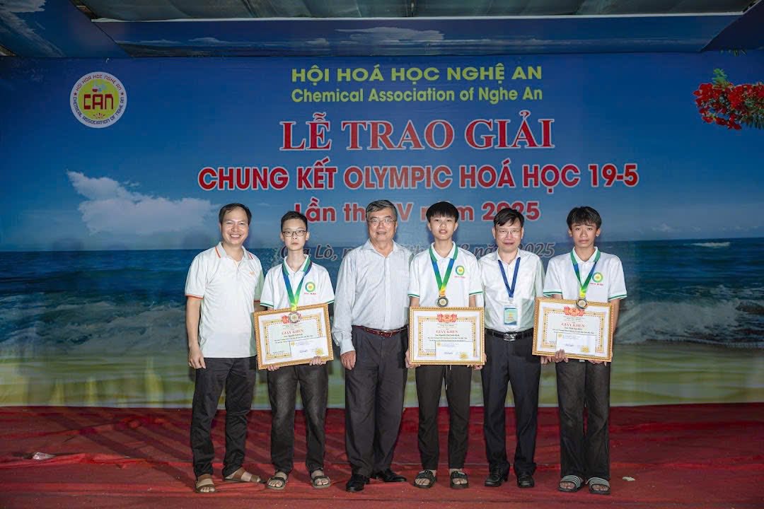 Chủ tịch Hội Hoá học Việt Nam và Chủ tịch Hội Hoá học Nghệ An trao Giải Nhất kỳ thi Olympic Hoá học 19-5 lần thứ III năm 2024