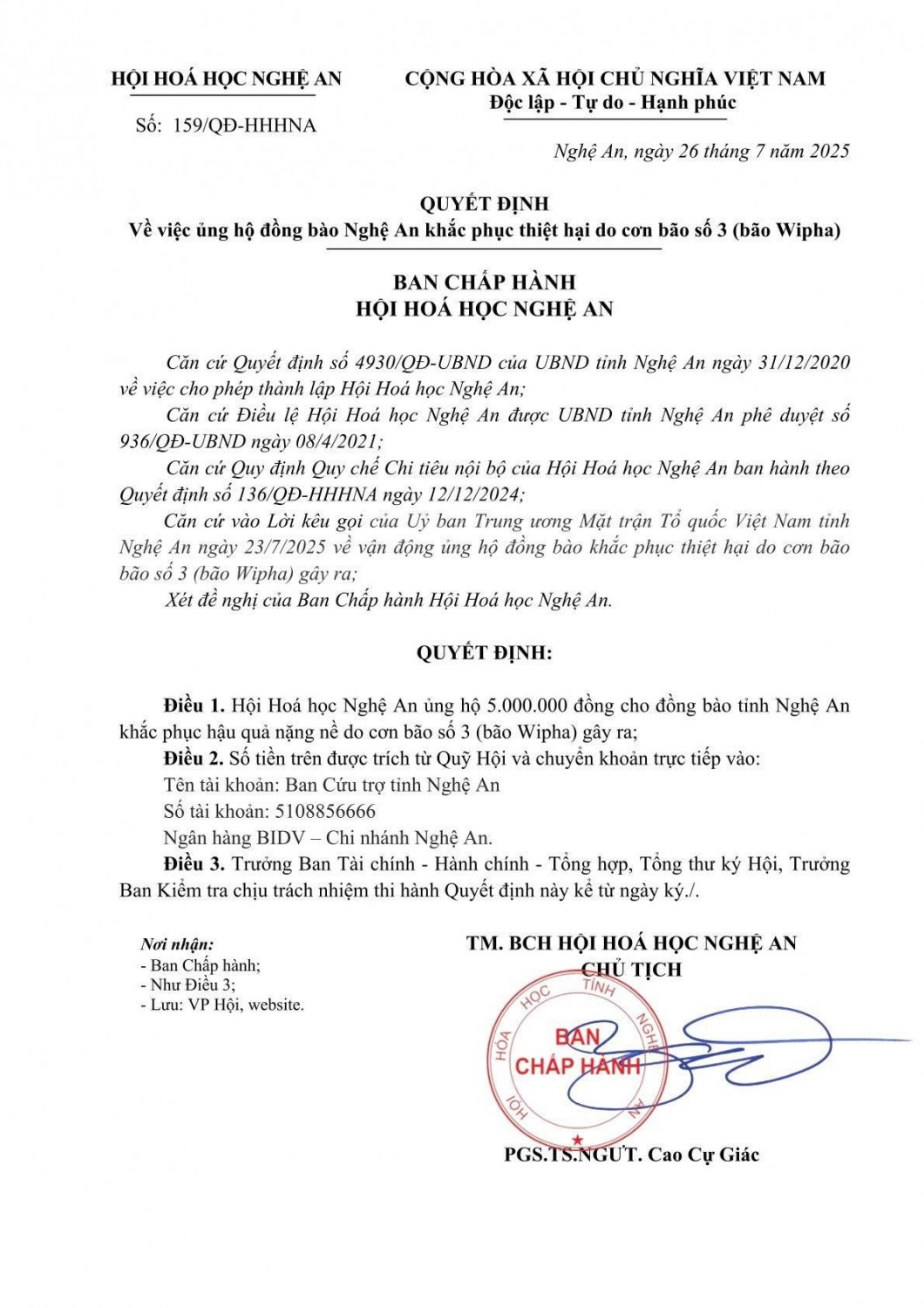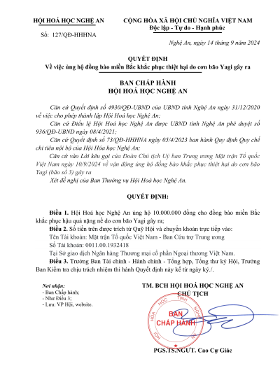 - Tên Hội: Hội Hoá học Nghệ An (Chemical Association of Nghe An)